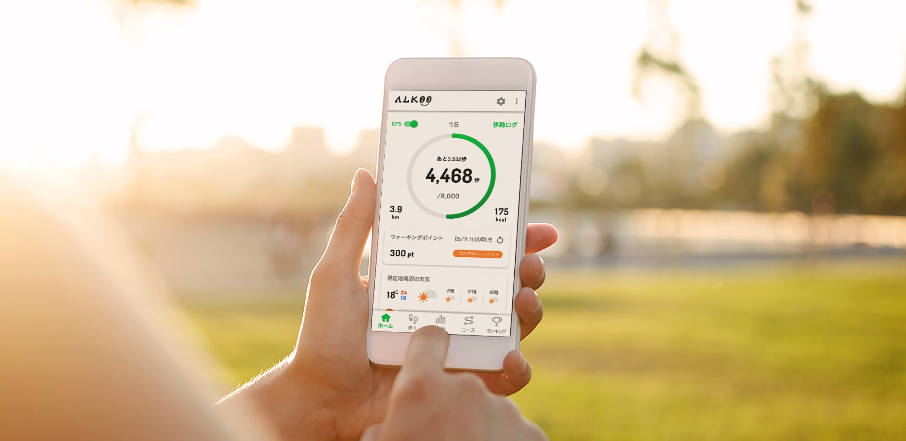 ナビタイムジャパンでは「健康寿命を伸ばして、人生における豊かな時間を創出する」という理念で活動している、ヘルスケアに関わる事業も存在しています。その中でも最も日常的な運動である「歩くこと」にフォーカスしたサービスがALKOO(あるこう) by NAVITIMEです。 健康になるには日常を変えることが大切ですが、現状が不健康でないと行動するのは難しいものです。そこで我々は 「健康になるため」、というよりは「歩くことって楽しい」と感じてもらい、結果的に健康になれるサービスを目指しています。