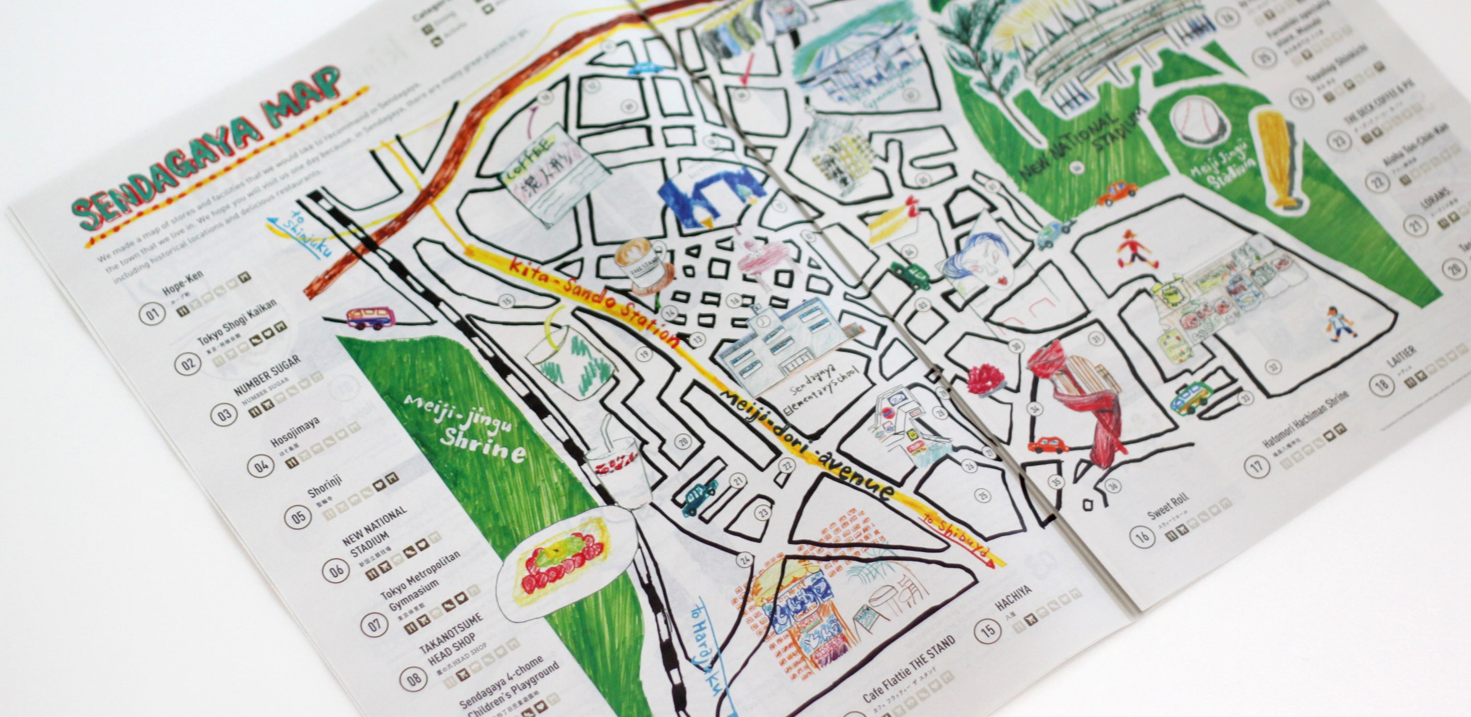 ナビタイムと渋谷区観光協会、渋谷区立千駄谷小学校が、千駄ヶ谷の魅力を発信することを目的とした共同プロジェクトで、訪日外国人旅行客向けに千駄ヶ谷インバウンド観光マップを制作しました。千駄谷小学校6年で実施されている「総合」の授業において、生徒が主体となって制作するためクリエイターの授業を受け、実際に手を動かして制作を進めました。講師陣には、渋谷区にゆかりのあるカメラマンの平野太呂氏や、イラストレーター・下田昌克氏を迎え、生徒たちの取材・撮影やマップ・イラスト制作のサポートを行い、ナビタイムは編集・デザインを担当。完成した印刷物は、生徒たちの手によって原宿駅周辺で配布されました。